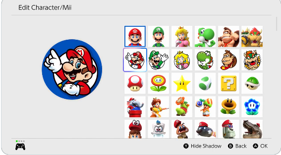 Um dos melhores aspectos do sistema do Nintendo Switch é a possibilidade de utilizar ícones de perfil com temas de várias grandes franquias da Nintendo, o que inclui uma quantidade considerável de ícones com personagens e elementos dos games Super Mario. No Nintendo Switch é possível atualmente escolher entre 147 ícones diferentes para exibir em seu perfil, e esse número vai aumentar expressivamente no próximo console da Nintendo, o Nintendo Switch 2.